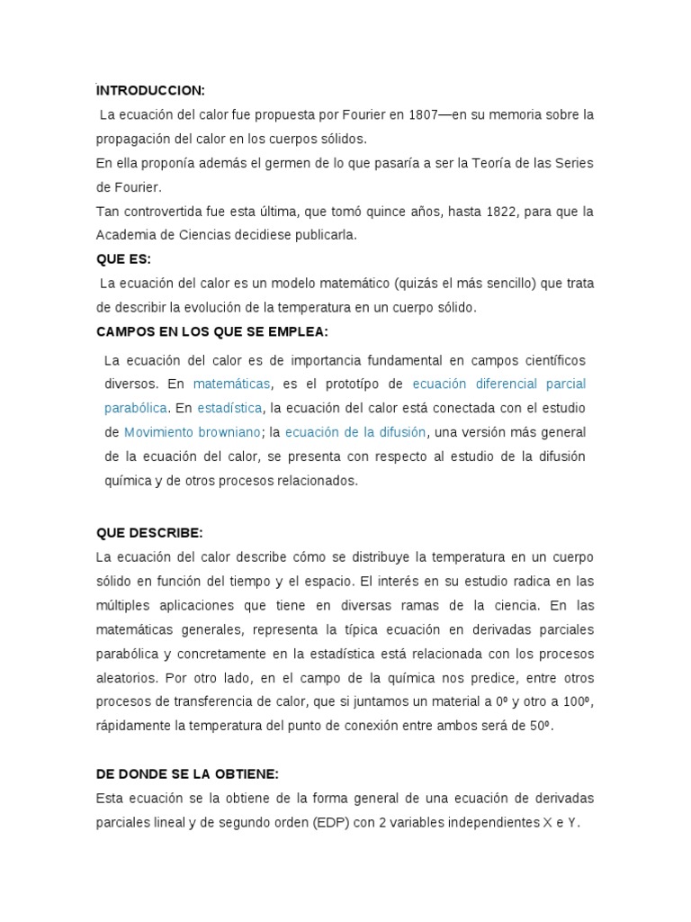 En esta investigación vamos a centrarnos solamente en la ecuación del calor ya