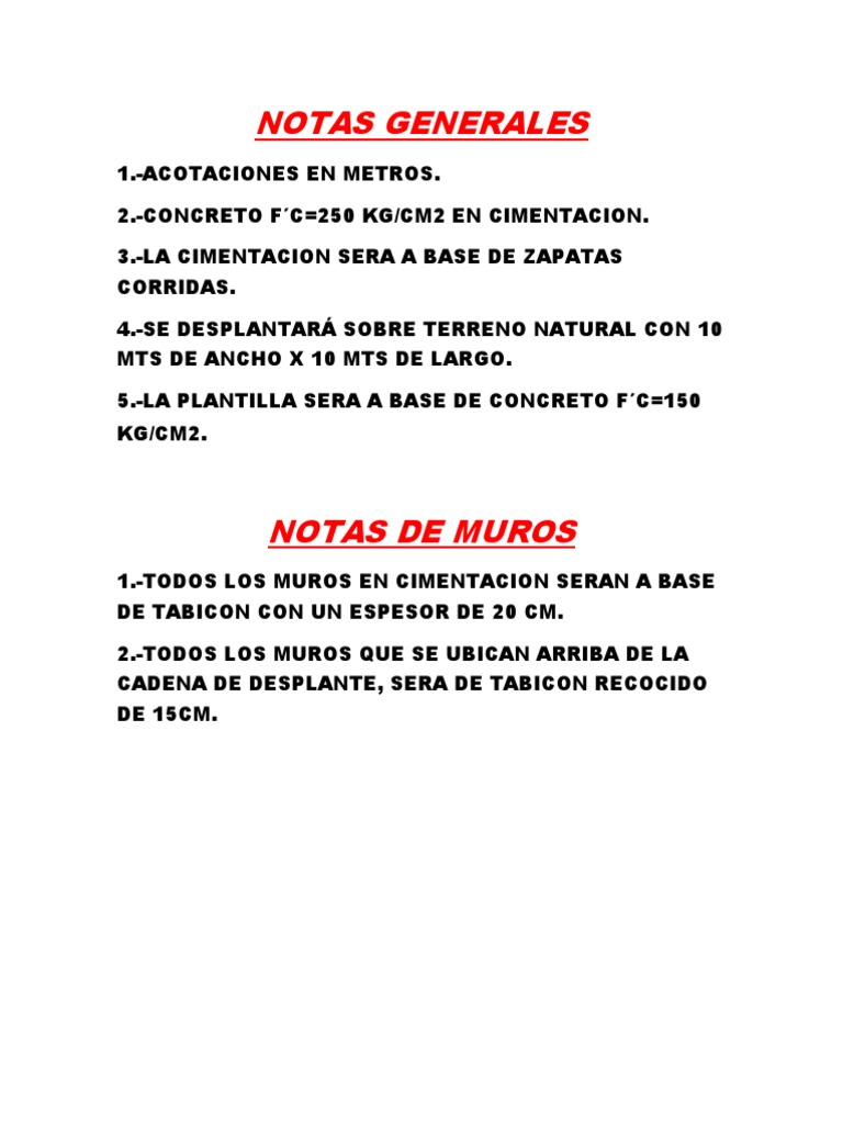1.-TODOS LOS MUROS EN CIMENTACION SERAN A BASE