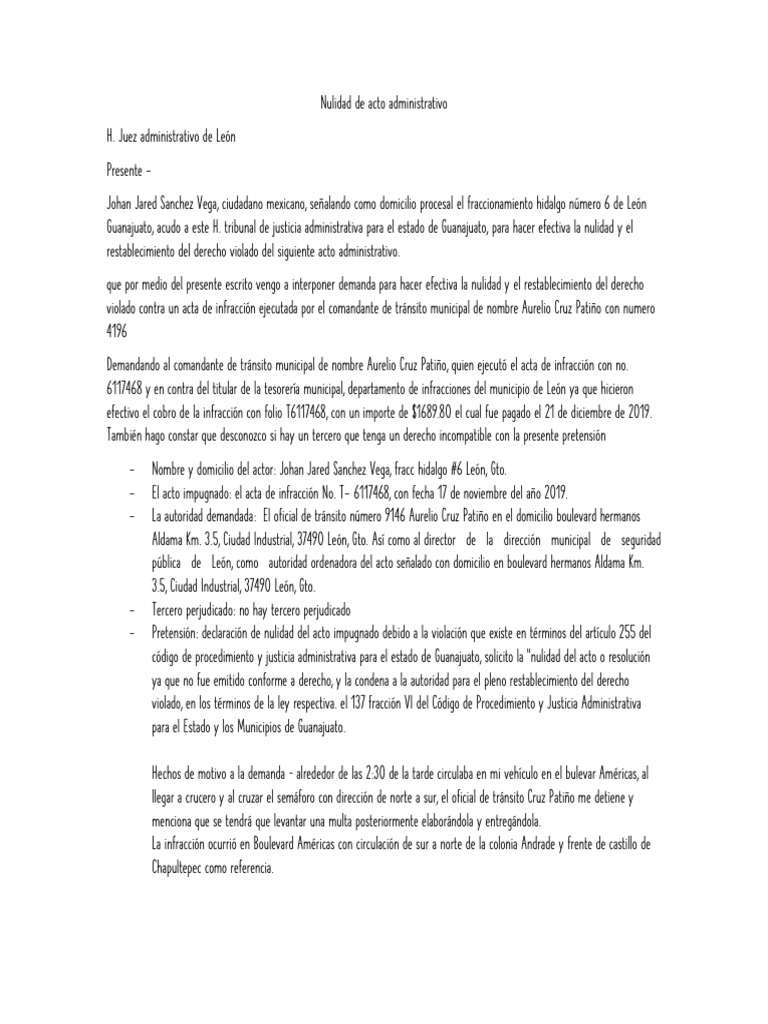 código de procedimiento y justicia administrativa para el estado de Guanajuato, solicito la “nulidad del acto o resolución