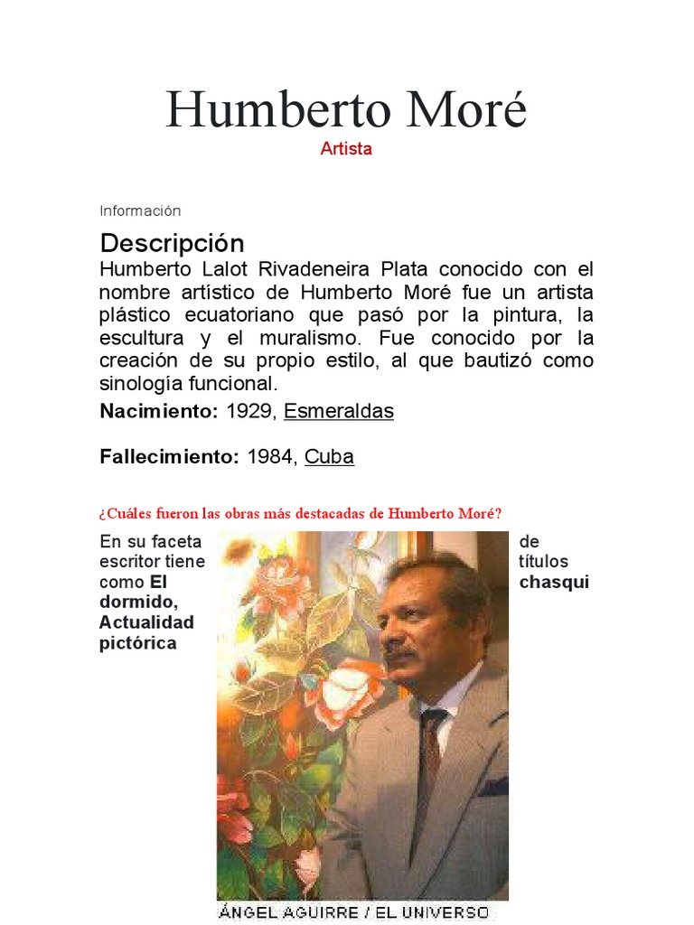 ¿Cuáles fueron las obras más destacadas de Humberto Moré?
