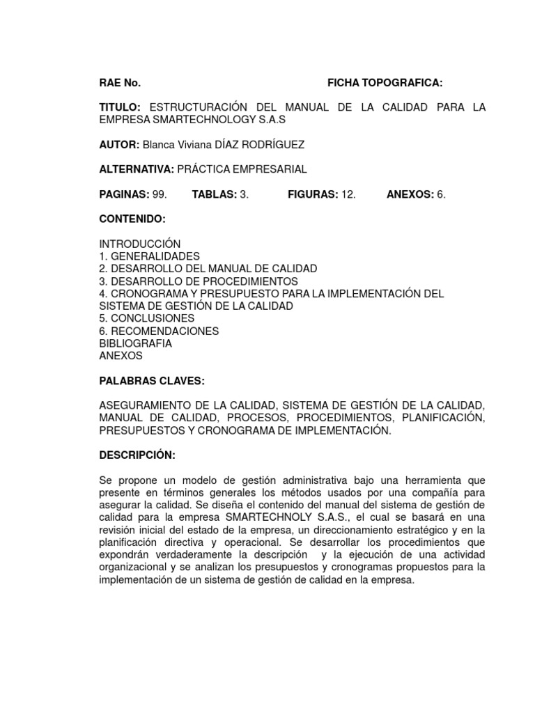 TITULO: ESTRUCTURACIÓN DEL MANUAL DE LA CALIDAD PARA LA
