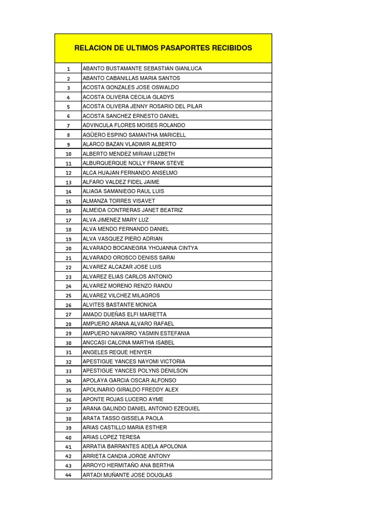 RELACION DE ULTIMOS PASAPORTES RECIBIDOS