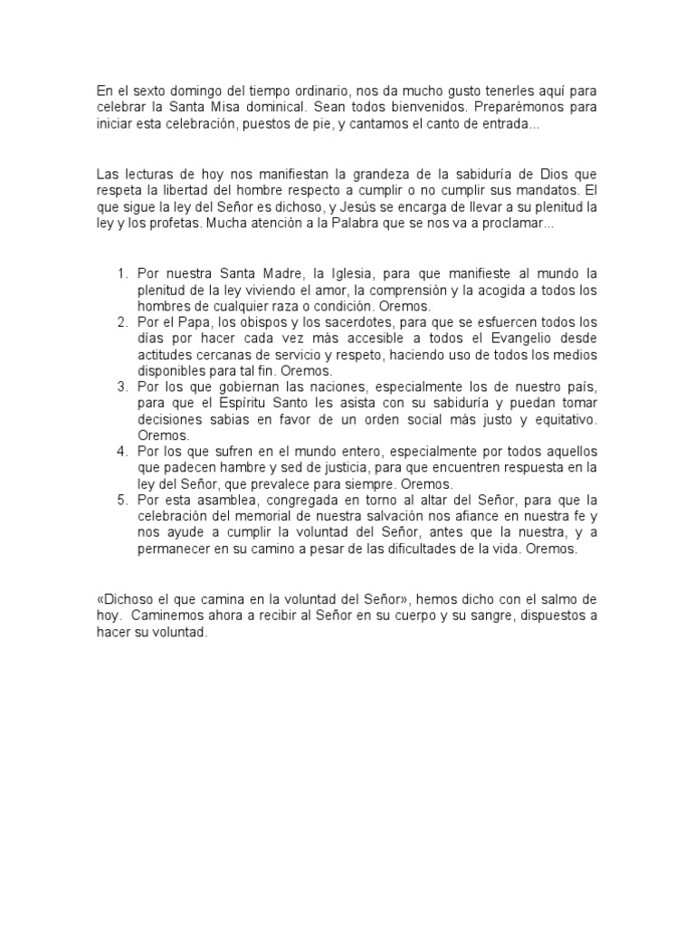 celebrar la Santa Misa dominical. Sean todos bienvenidos. Preparémonos para