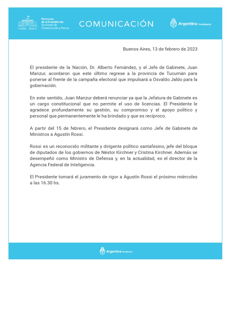 En este sentido, Juan Manzur deberá renunciar ya que la Jefatura de Gabinete es