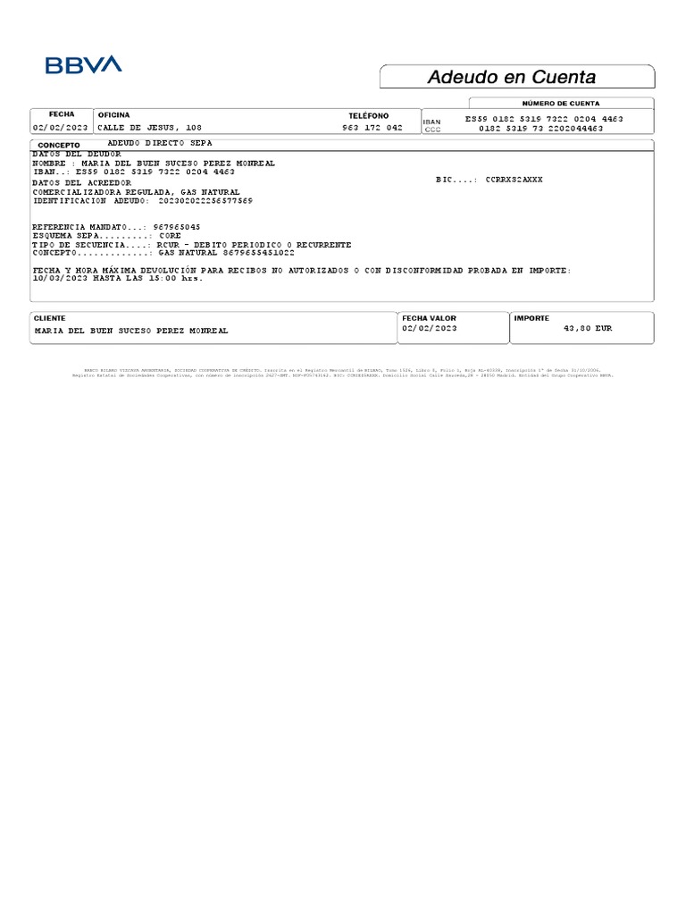 MARIA DEL BUEN SUCESO PEREZ MONREAL 02/02/2023 43,80 EUR