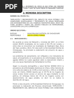 “MEJORAMIENTO Y AMPLIACIÓN DEL SISTEMA DE AGUA POTABLE Y DISPOSICIÓN SANITARIA DE EXCRETAS EN