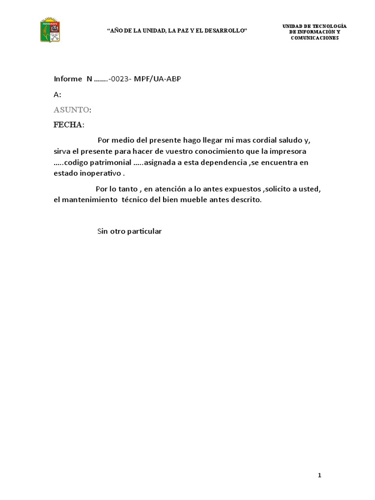 Informe N …….-0023- MPF/UA-ABP