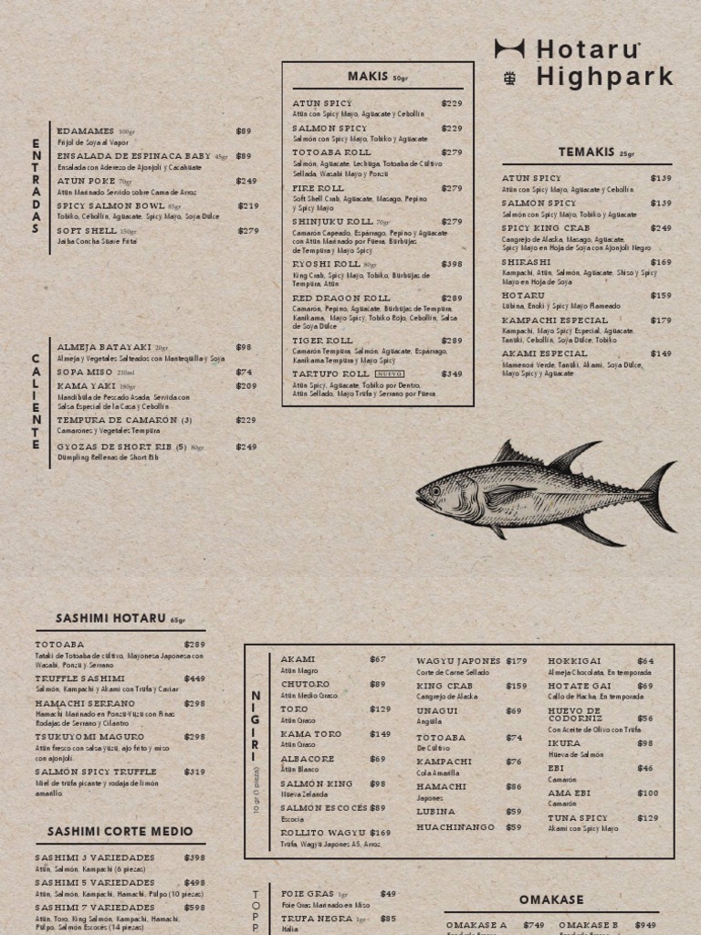 SOPA MISO 210ml $74 TAR TUF O R O L L N U E V O $349 Mayo Spicy y Aguacate
