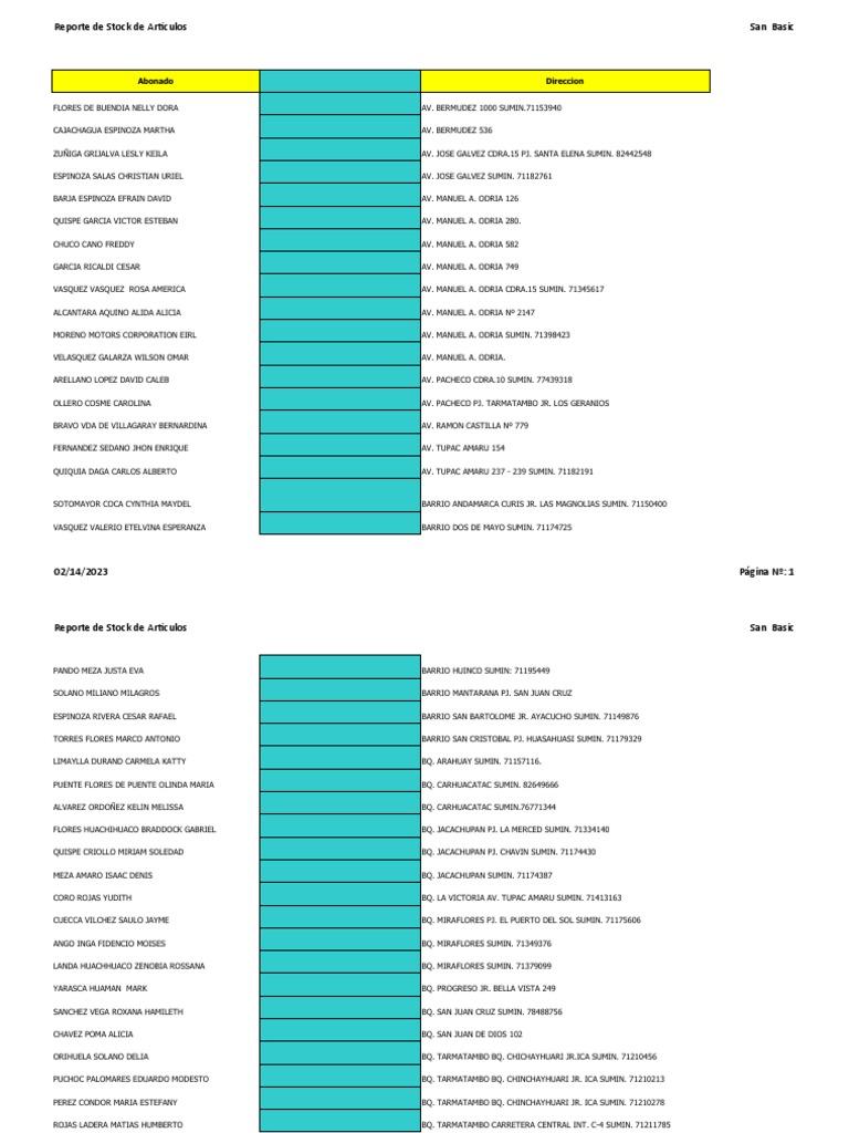 VASQUEZ VALERIO ETELVINA ESPERANZA BARRIO DOS DE MAYO SUMIN. 71174725