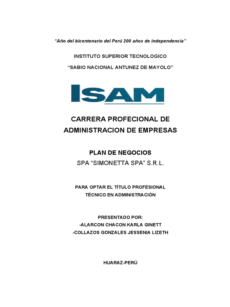 analizar la viabilidad de crear un Spa Simoneta S.R.L. en la ciudad de