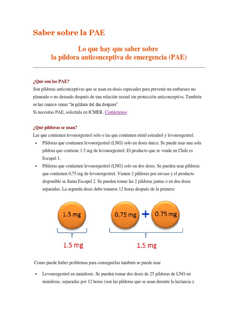 píldora que contiene 1.5 mg de levonorgestrel. El producto que se vende en Chile es
