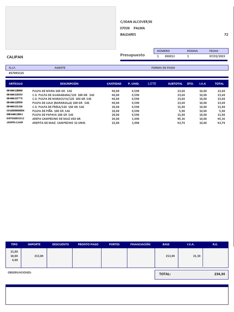 CALIPAN Presupuesto 1 000013 1 07/01/2023