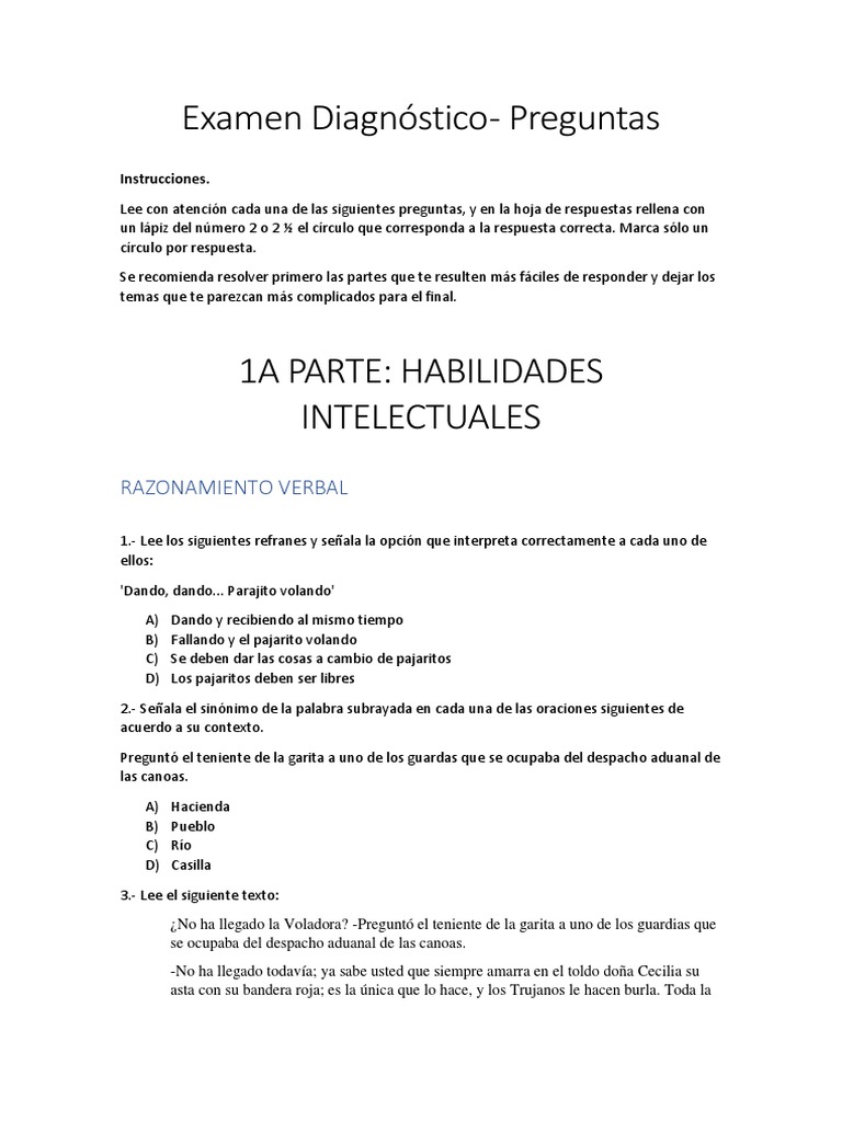 Lee con atención cada una de las siguientes preguntas, y en la hoja de respuestas rellena con