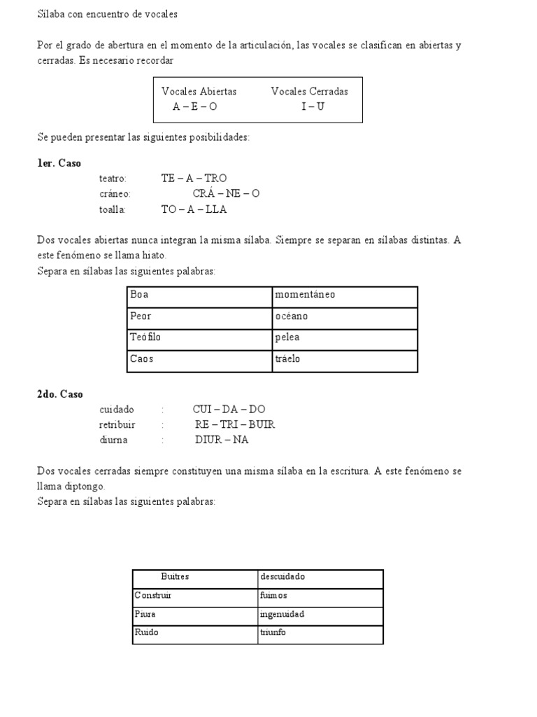 Sílaba con encuentro de vocales