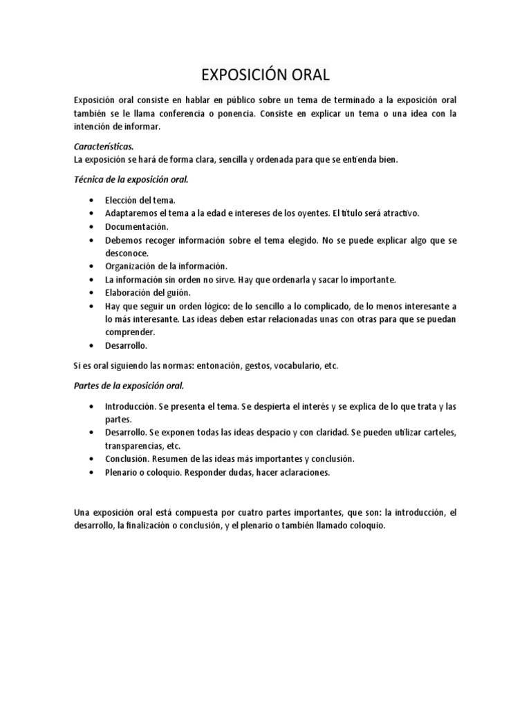 Exposición oral consiste en hablar en público sobre un tema de terminado a la exposición oral