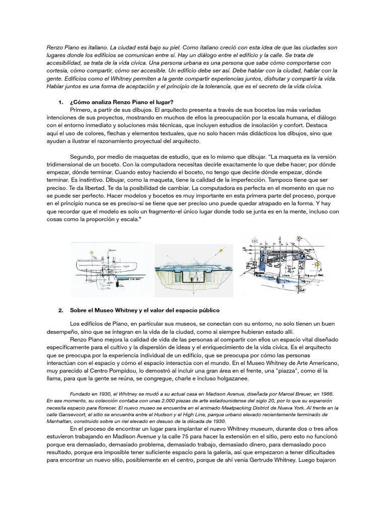 1. ¿Cómo analiza Renzo Piano el lugar?