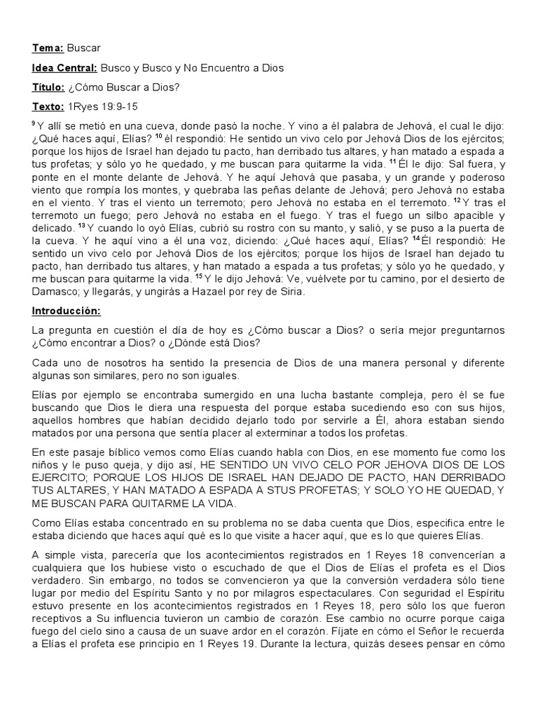 Idea Central: Busco y Busco y No Encuentro a Dios