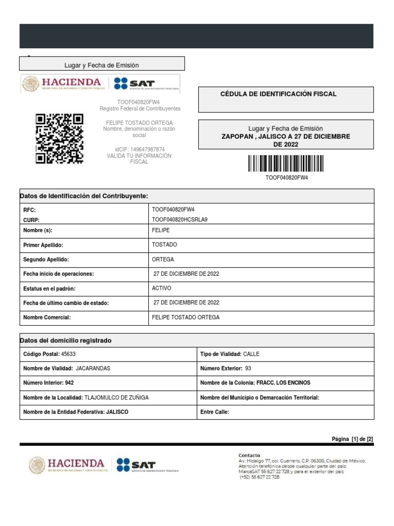 CÉDULA DE IDENTIFICACIÓN FISCAL