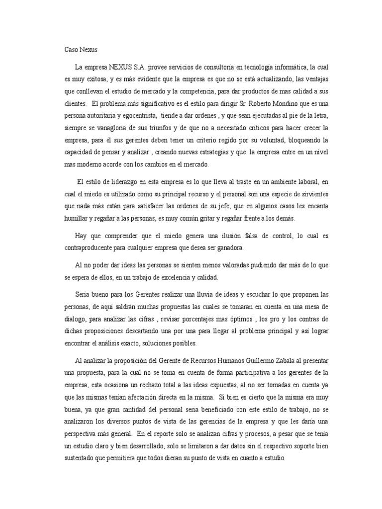 clientes. El problema más significativo es el estilo para dirigir Sr Roberto Mondino que es una