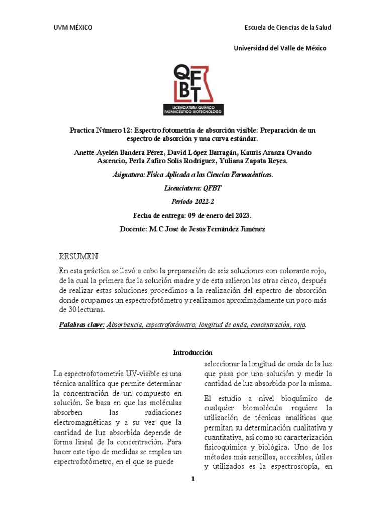 Practica Número 12: Espectro fotometría de absorción visible: Preparación de un