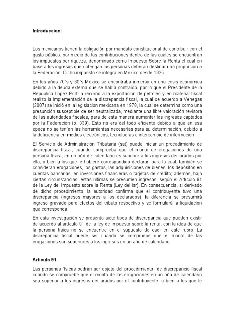 realizo la implementación de la discrepancia fiscal, la cual de acuerdo a Venegas