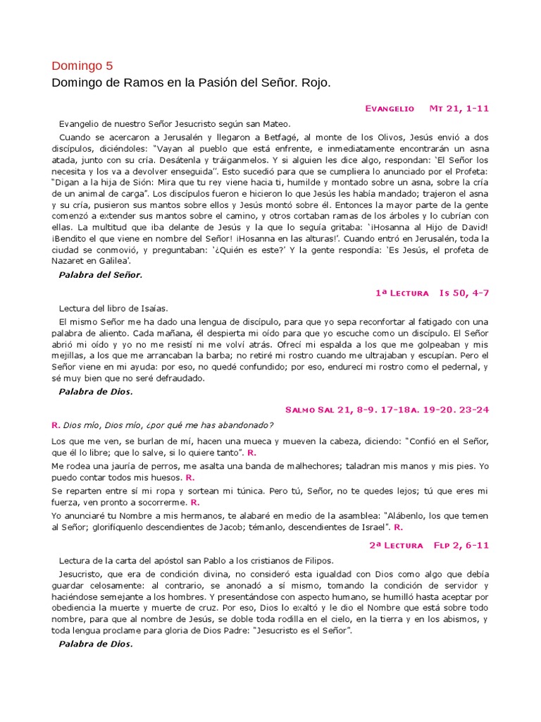 Domingo de Ramos en la Pasión del Señor. Rojo.