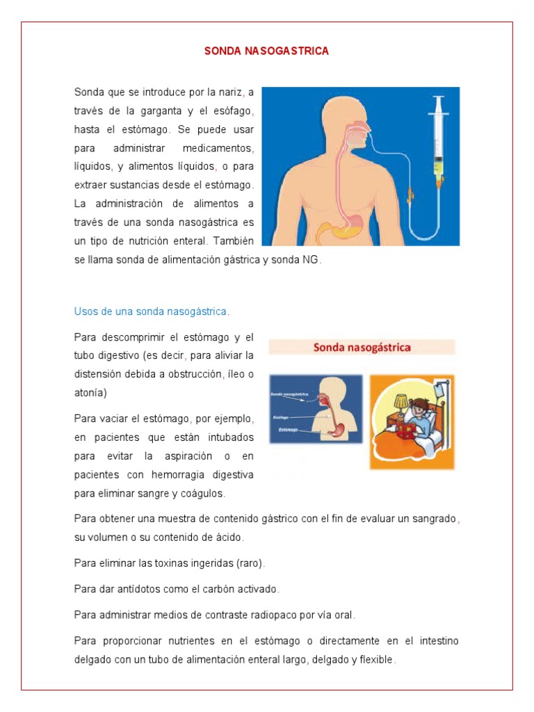 Usos de una sonda nasogástrica.