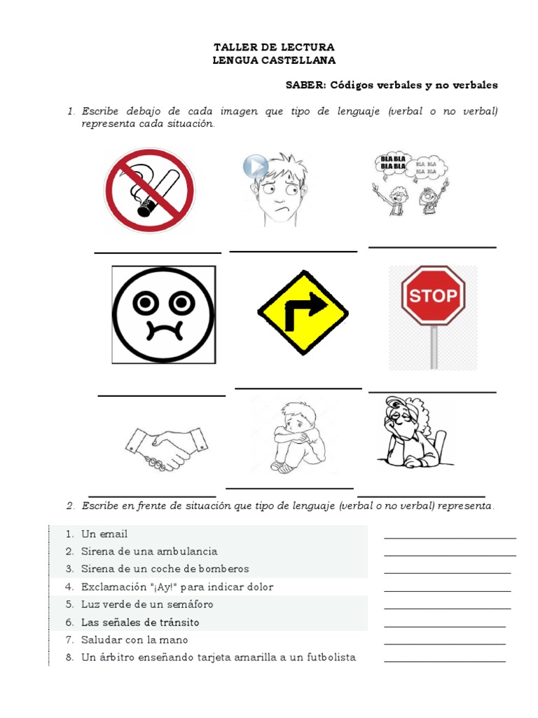 1. Escribe debajo de cada imagen que tipo de lenguaje (verbal o no verbal)