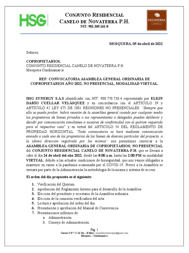 COPROPIETARIOS AÑO 2022, NO PRESENCIAL, MODALIDAD VIRTUAL.
