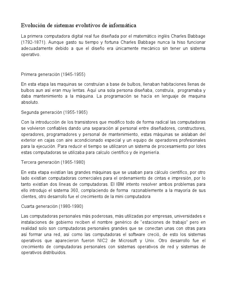 Evolución de sistemas evolutivos de informática