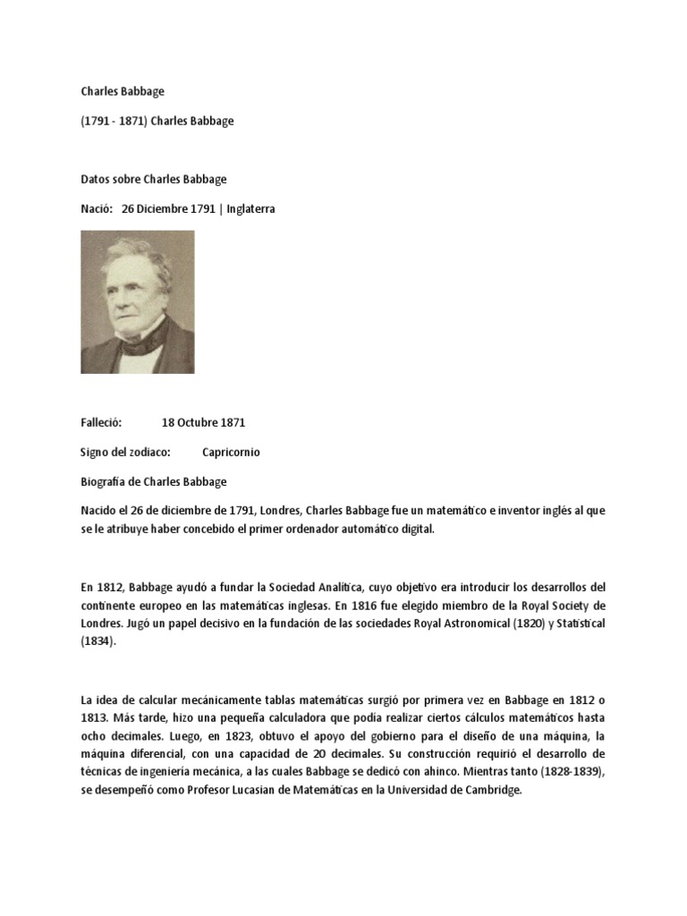 Datos sobre Charles Babbage