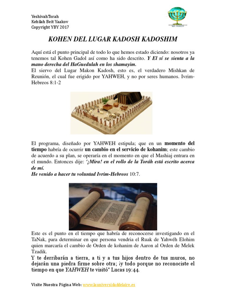 KOHEN DEL LUGAR KADOSH KADOSHIM