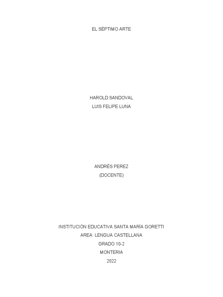 título al igual que las demás artes. El cine, desde su creación en 1895, nos ha