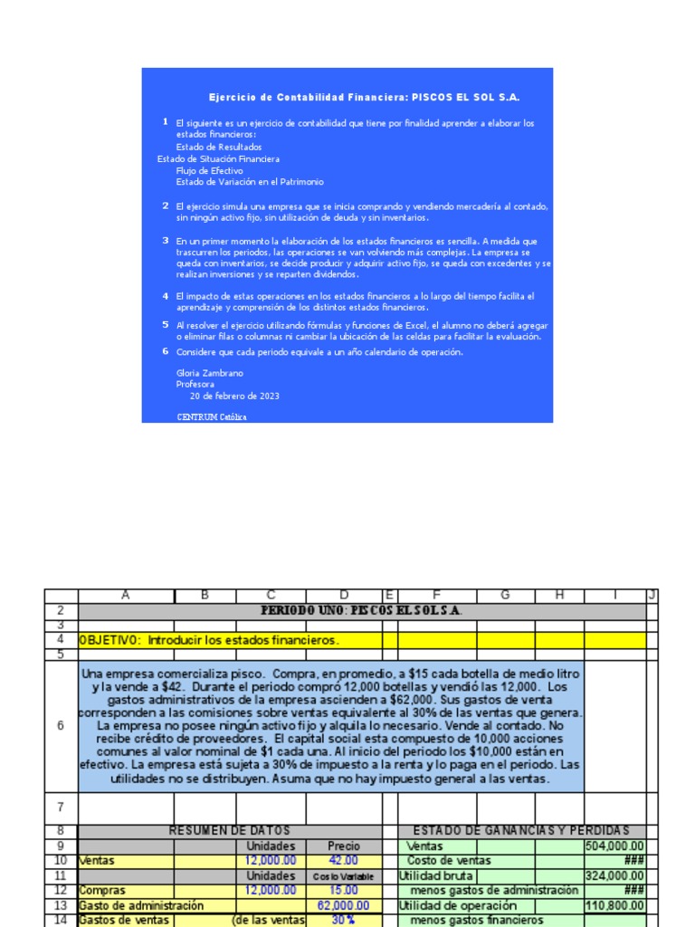 Ejercicio de Contabilidad Financiera: PISCOS EL SOL S.A.
