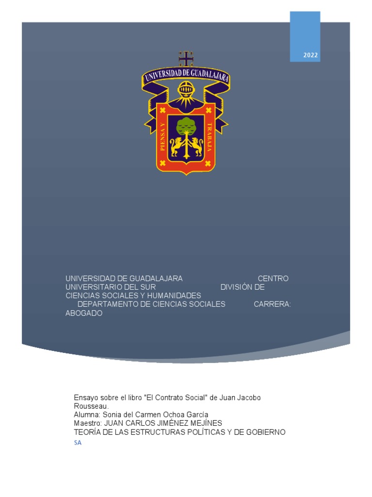 Ensayo sobre el libro "El Contrato Social" de Juan Jacobo Rousseau.