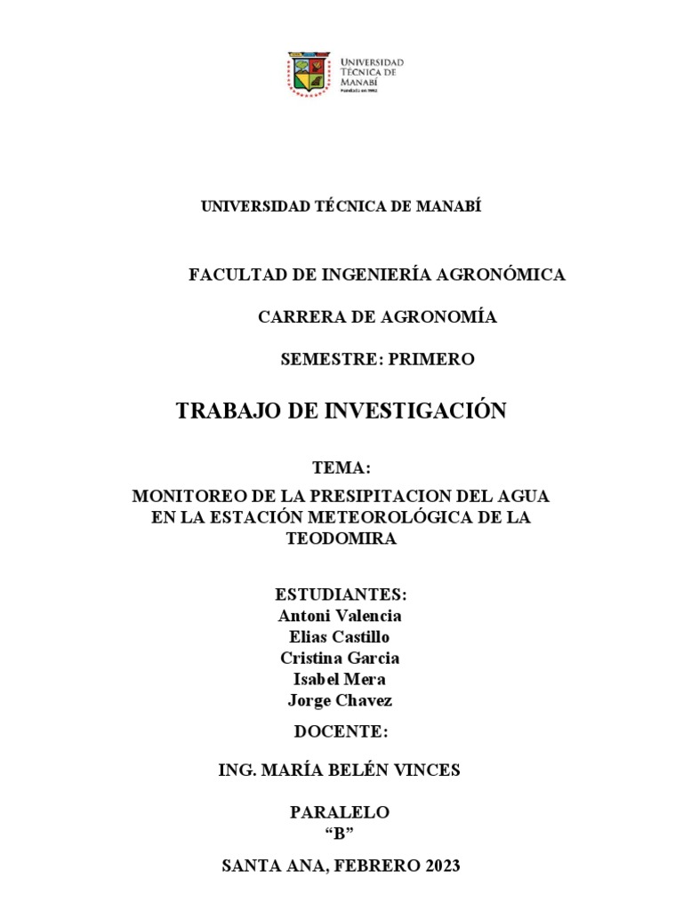 Monitorear la precipitación del agua en la estación meteorológica de La Teodomira.