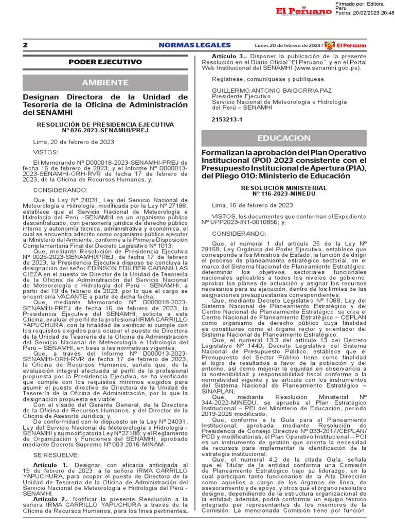2 NORMAS LEGALES Lunes 20 de febrero de 2023 / El Peruano