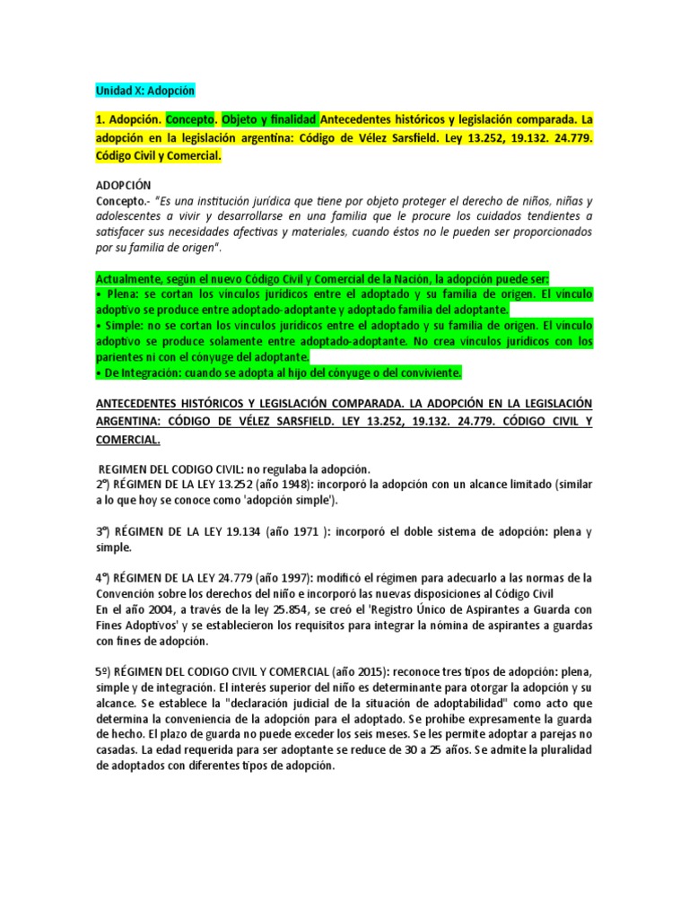 adopción en la legislación argentina: Código de Vélez Sarsfield. Ley 13.252, 19.132. 24.779.