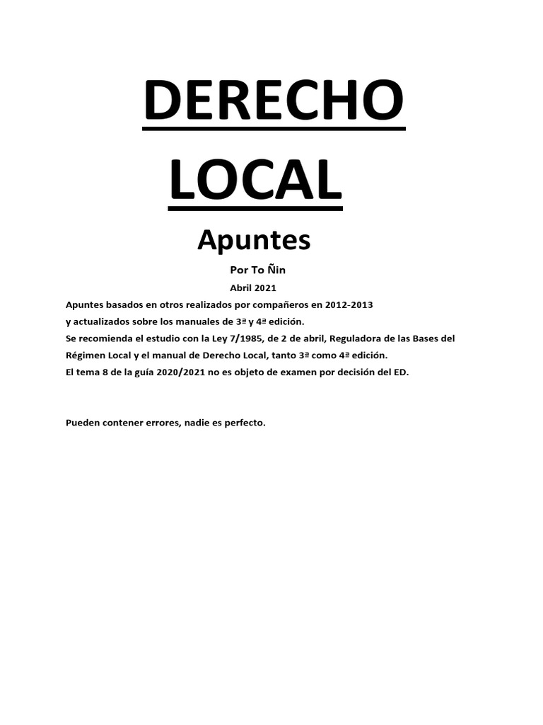 Apuntes sobre Derecho Local en España
