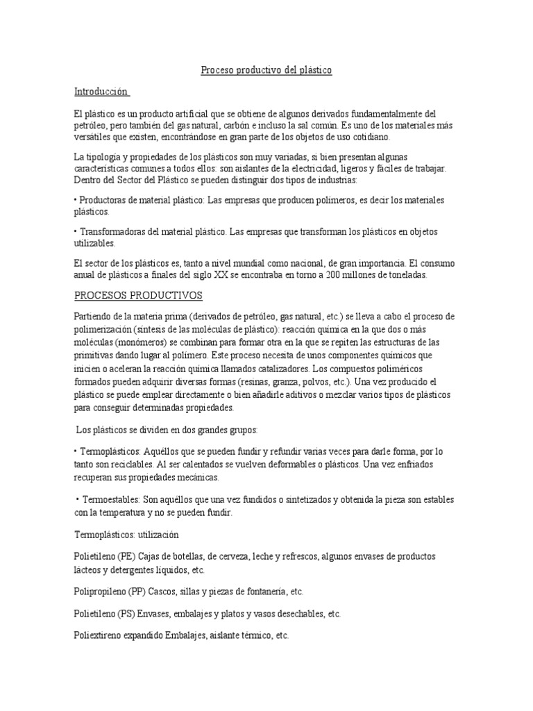 La fabricación de los plásticos y sus manufacturas implica cuatro pasos básicos: