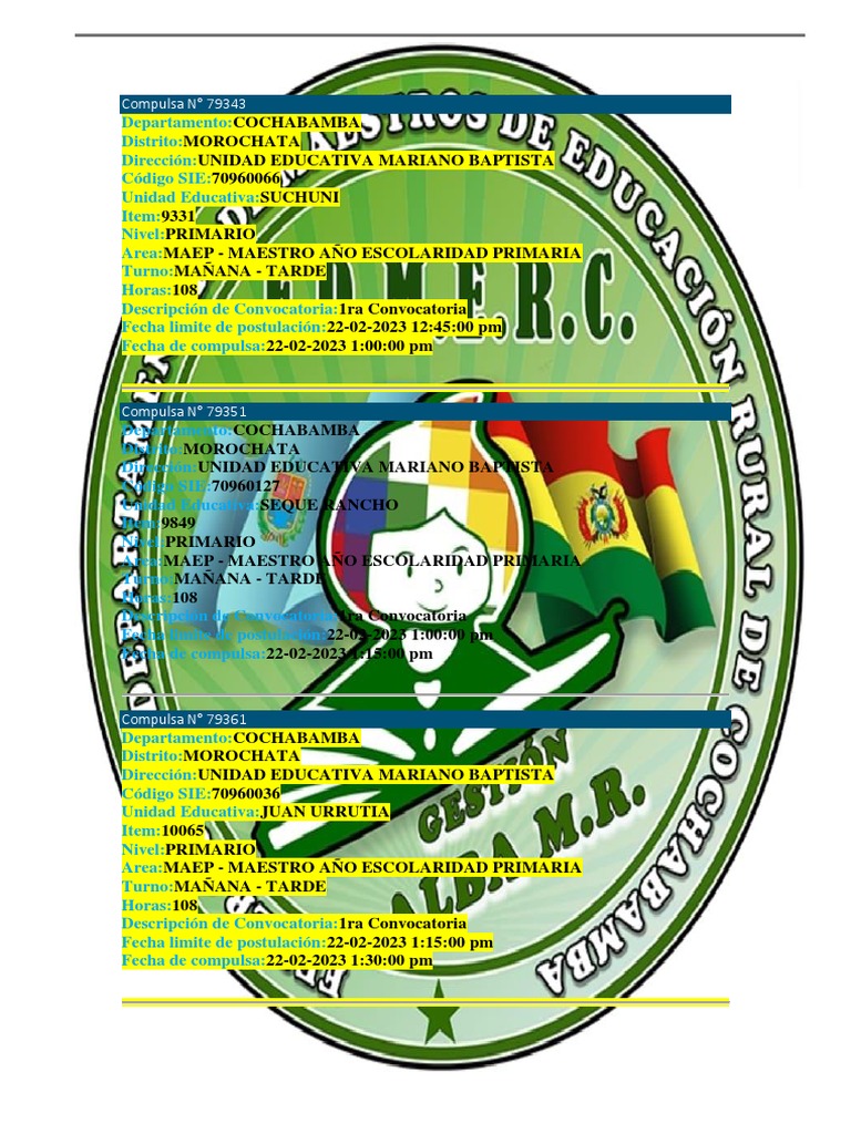 Unidad Educativa “Mariano Calle La Paz entre SANTIVAÑEZ, TOCO, SACABAMBA