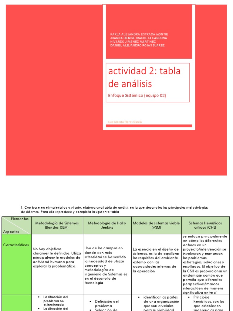 1. Con base en el material consultado, elabora una tabla de análisis en la que desarrolles las principales metodologías
