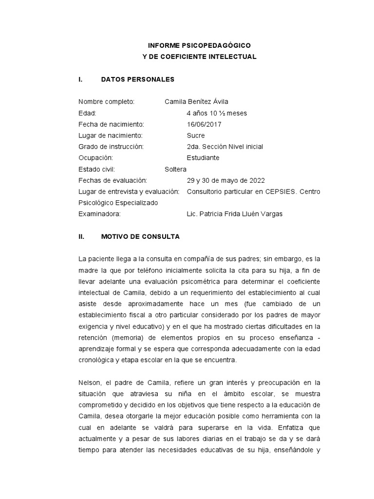 INFORME PSICOPEDAGÓGICO