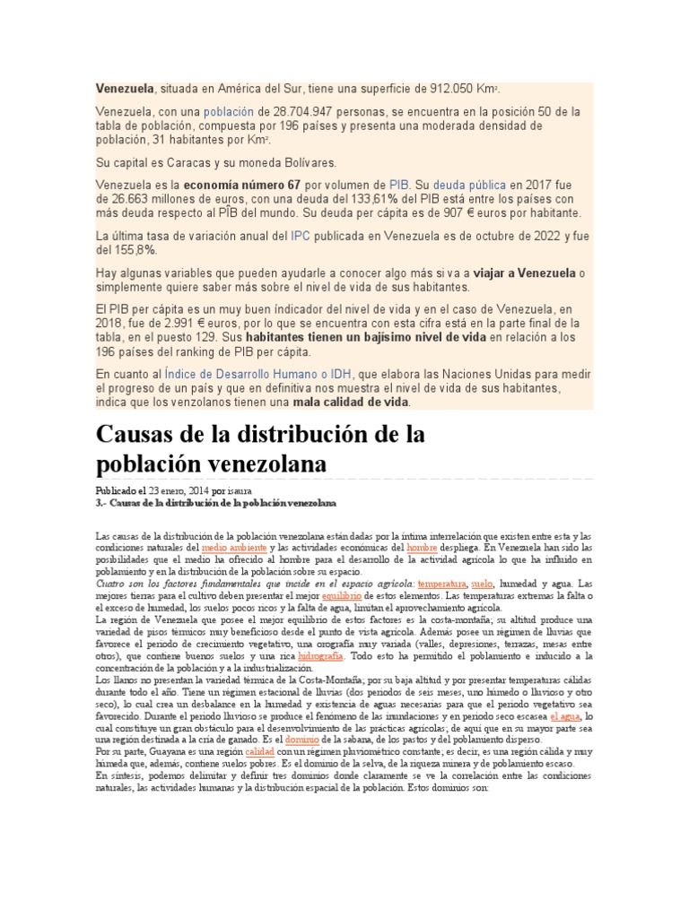 Las causas de la distribución de la población venezolana están dadas por la íntima interrelación que existen entre esta y las