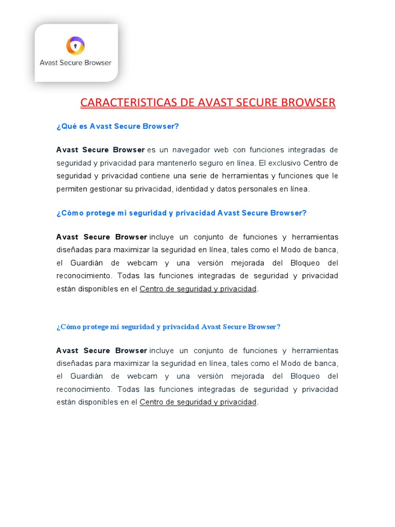 CARACTERISTICAS DE AVAST SECURE BROWSER
