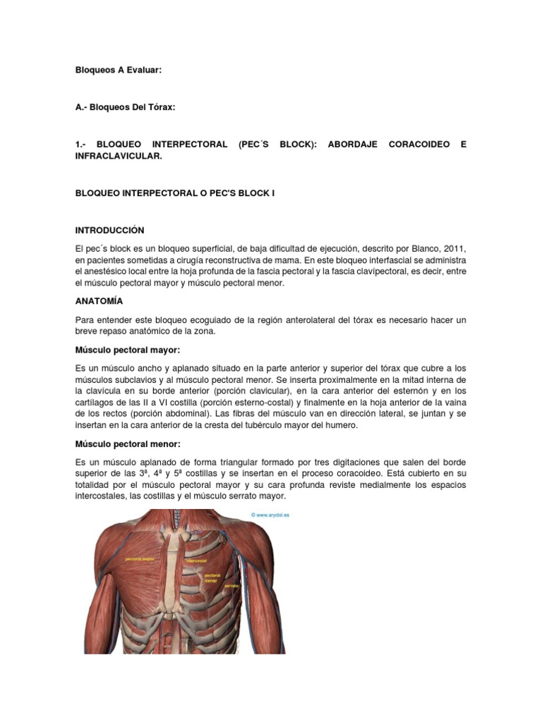 El pec´s block es un bloqueo superficial, de baja dificultad de ejecución, descrito por Blanco, 2011,