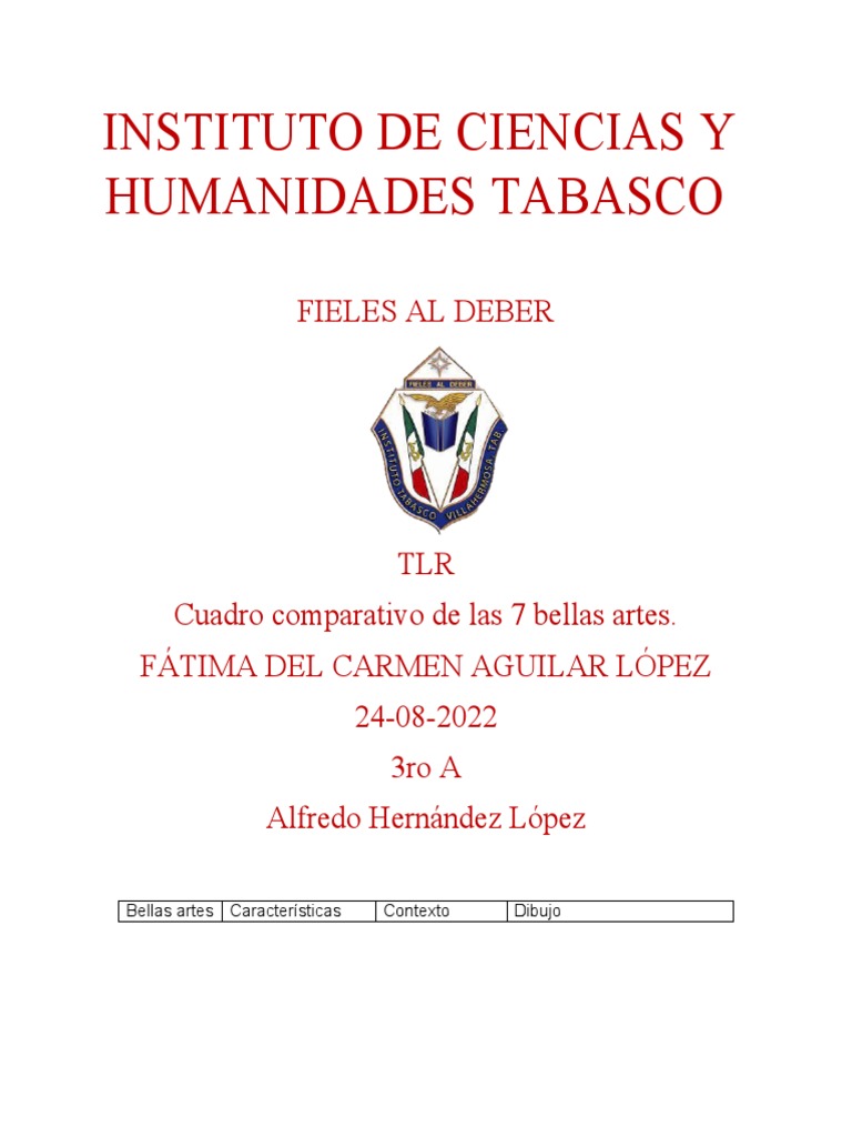 Cuadro comparativo de las 7 bellas artes.