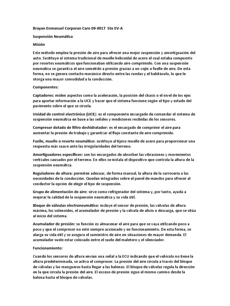 suspensión neumática en base a las señales y mediciones recibidas de los sensores.