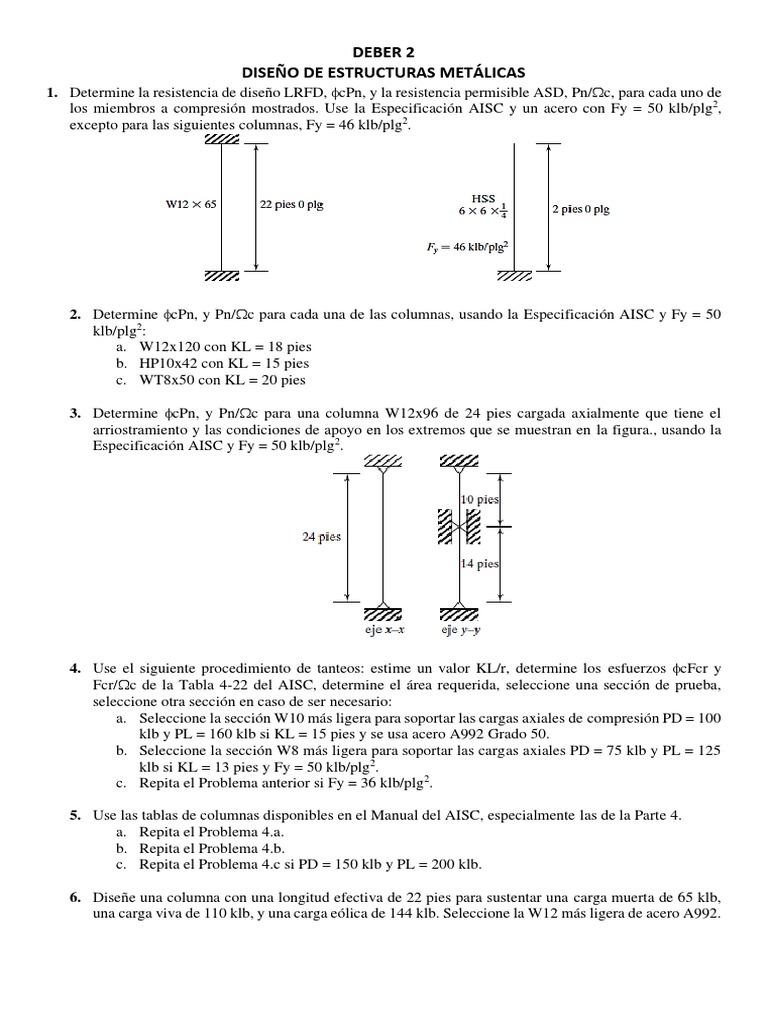 6. Diseñe una columna con una longitud efectiva de 22 pies para sustentar una carga muerta de 65 klb,