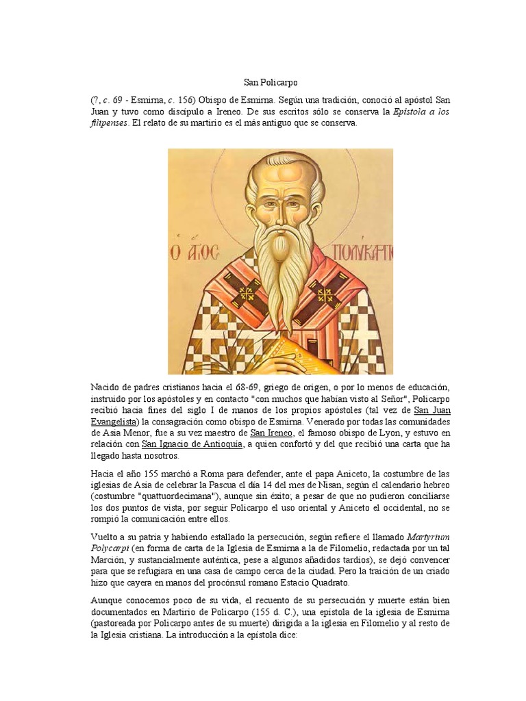 filipenses. El relato de su martirio es el más antiguo que se conserva.